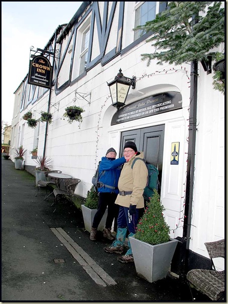 All this talk, especially the references to pubs, had engendered a great thirst, resulting in one of our number, on spotting the Crown, rushing ahead and insisting on sustenance, before being dragged out by his leader.