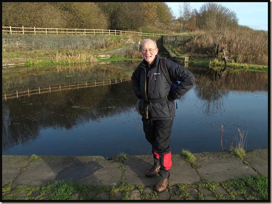 David, a founder 'Plodder' who is only rarely able to join us these days due to family commitments, posed in the sunshine beside a complex junction of waterways involving the Croal, the Irwell, and the canal.