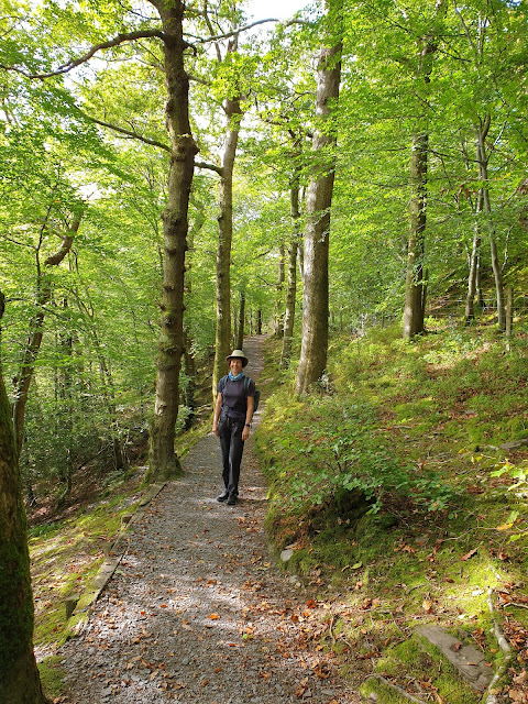 Further along the path, a diversion to see 'the Frenchman's Grave'. On the right in the picture below is a plaque with Auguste Guyard's epitaph, and ahead is his grave, with the epitaph faintly visible on the headstone. This Frenchman escaped from the Franco-prussian war of 1871. He made friends with Ruskin and made a home as a plantsman here in Barmouth.